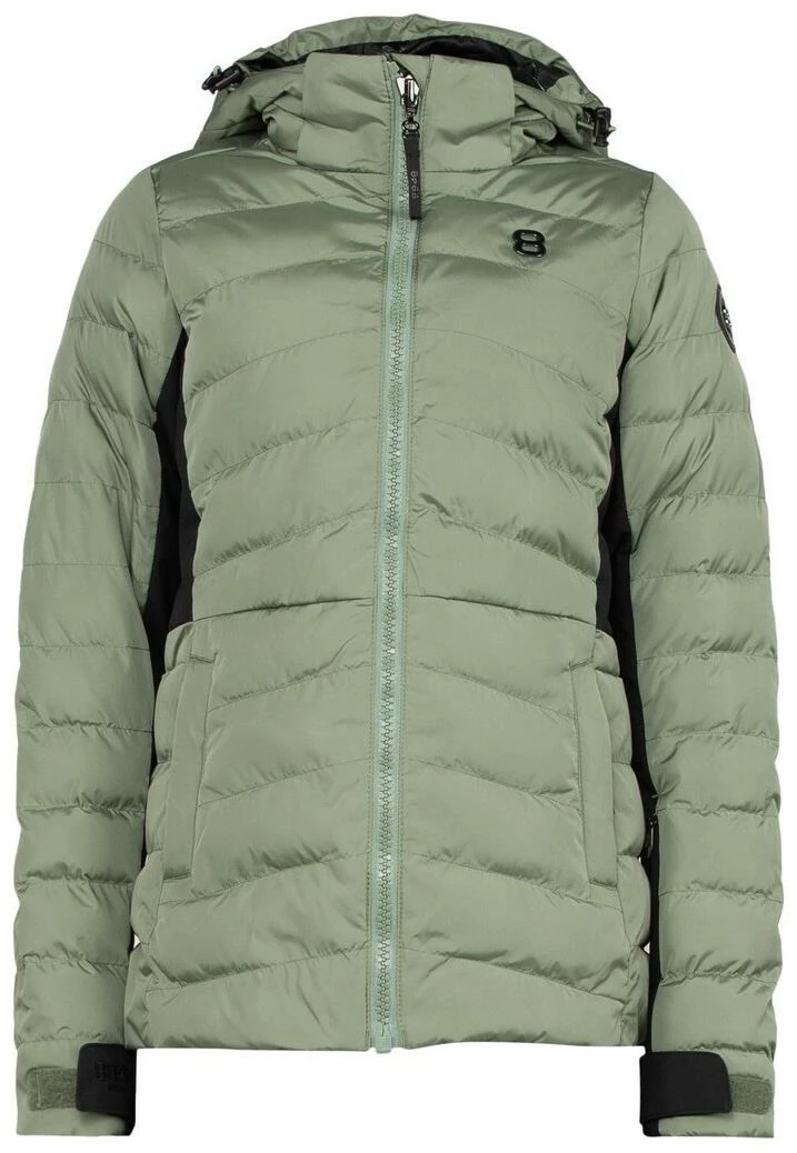 The contrasting fabric on the sides and under the sleeves is waterproof and made of recycled polyester. The jacket’s soft inner lining gives a nice interior feel, in addition it is dyed with an environmentally friendly e.dye® process where no water is needed as with traditional dyeing. Personal adaptation and protection against cold and wind is offered with several details: The hood is removable and adjustable (does not apply to sizes 120-130 for safety reasons), the sleeve ends are adjustable with velcro, and a stretchy snowgaiter at the waist stops penetrating snow. The jacket features two hand warming pockets with soft lining, an inner mesh pocket for accessories and a nicely integrated ski pass pocket on the sleeve. All zippers are of the highest quality from YKK®. As a final touch, the jacket is decorated with an exclusive badge on the sleeve, our stylish « 8 » in metal on the chest and an embroidered tone-in-tone logo on the sleeve strap. Style on the slopes, style down town; The new Bloomfield JR Jacket is created for active girls who appreciate both a warm and comfortable jacket – and a fashionable, modern look.